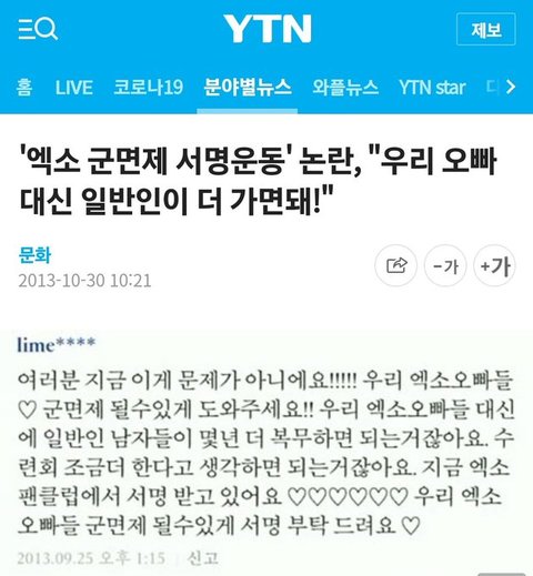 이제 군대 뺄 어떤 핑계도 사라졌네 방탄이 현역인데 얘가 면제? 이렇게 되니까 ㅇㅇ...