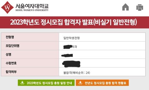 아무생각없이 축하해주려고 들어왔는데 내가 예비24번 받고 떨어진 대학이네...ㅋㅋㅠ 눈물나지만 축하해...