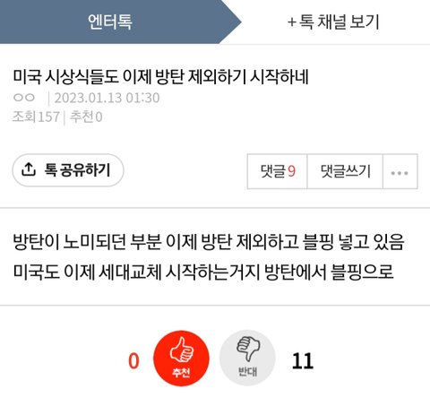 결론 : 작년에도 미국 3대 시상식은 방탄만 본상 노미 or 수상을 하였다 ㅇㅇ 여전히 수상을 하는건 방탄뿐임