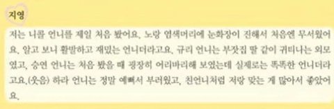 지영: 오디션지켜봤는데 귀여웠다, 하는 행동이 딱 중3같았다