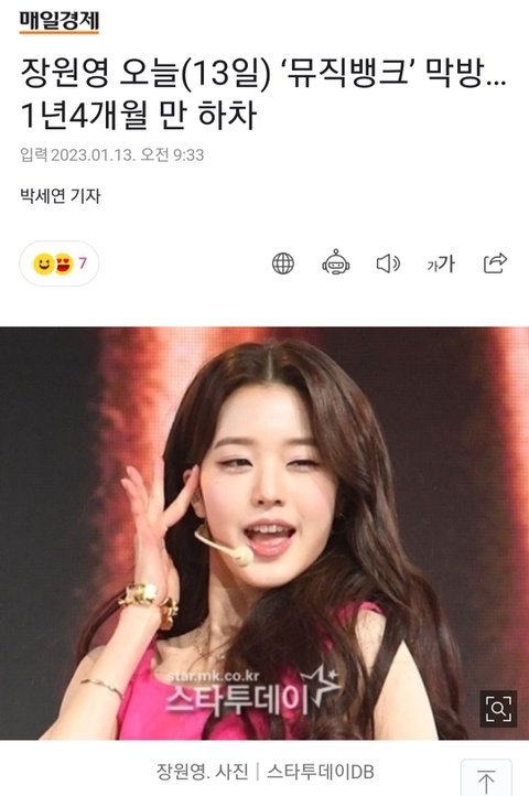 장원영 오늘 뮤직뱅크 막방 1년4개월만에 하차