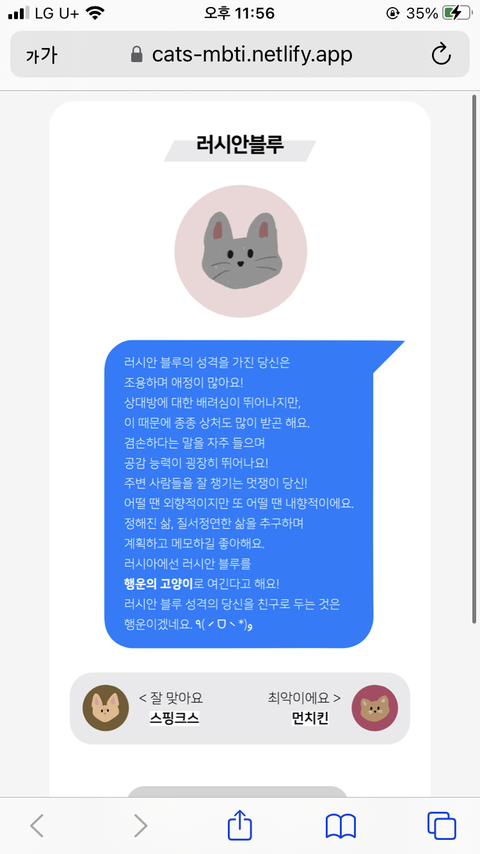 나는 러시안 블루 나왔다! 제노야 나도 바보같고 이상해 나는 안될까