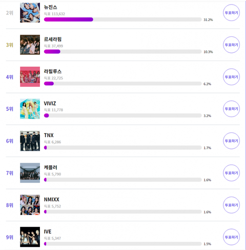 초동 70만장 가수가 12만장 가수한테 1000배 차이로 투표에서 발리는 상황