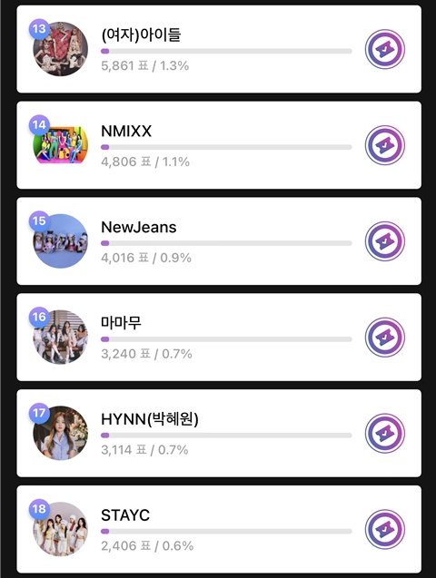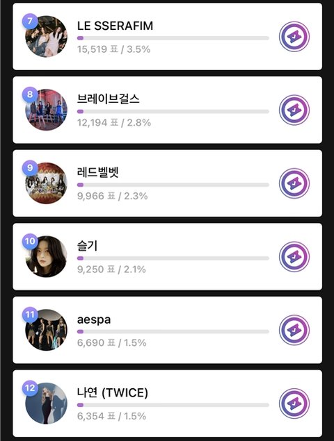 아이브, 에스파, 트와이스, 엔믹스, 케플러, 엔시티, 엔드림, 스키즈