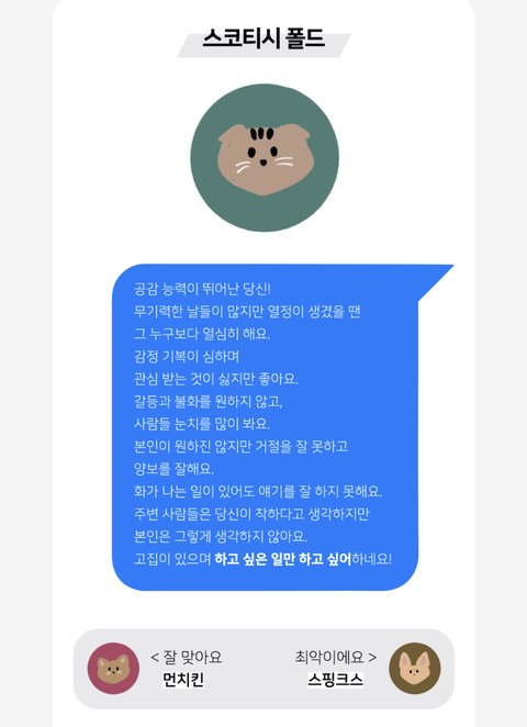 오늘에서야 해봤다!ㅋㅋㅋ 다 맞는 말이야 근데 mbti는 다른 거야