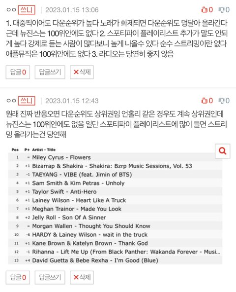 보통 스트리밍 저렇게 나오면 다운 합쳐서 50위권은 나와야함