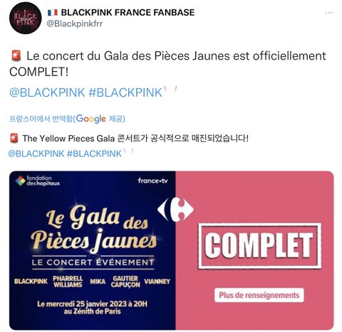 블핑 프랑스에 자선 콘서트 공연하러 간대