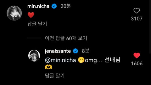 아이들 민니님이 윤진이 인스타에 댓글 남기셨어