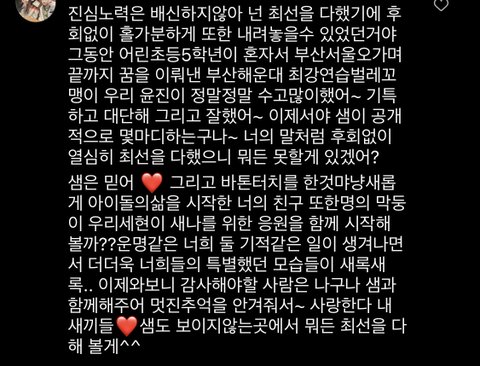 홀가분할게 후회없이 내려놓았데.. 루머 이런건 진짜 미친소리였고