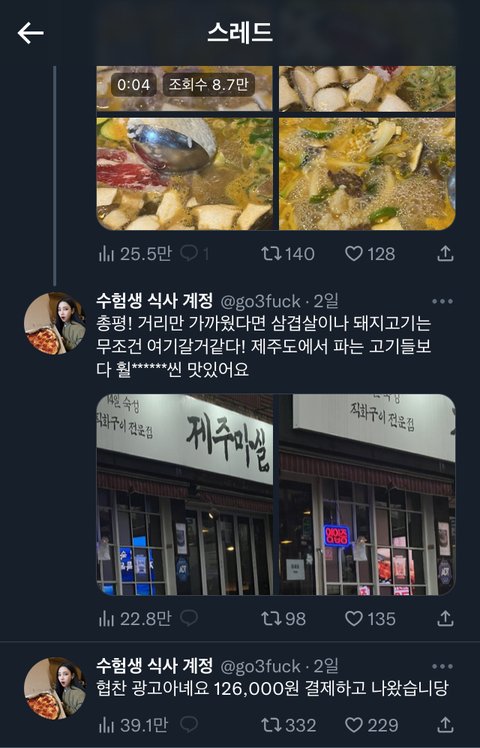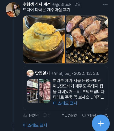 계정주 재수생인데 재수끝나고 계정 판듯 그리고 사진도용하다가 걸림 ㅋㅋ 핑계도 올려달라는 요청이 많은데 안땡겨서? 원래 집밥도 올리는 사람인데 구글에서 사진 퍼와서 걸림 그리고 돼지고기집도 누가봐도 광고인데 광고 아닌척 ㅋㅋㅋ 팔로우 만명빠짐 지금도 빠지는중