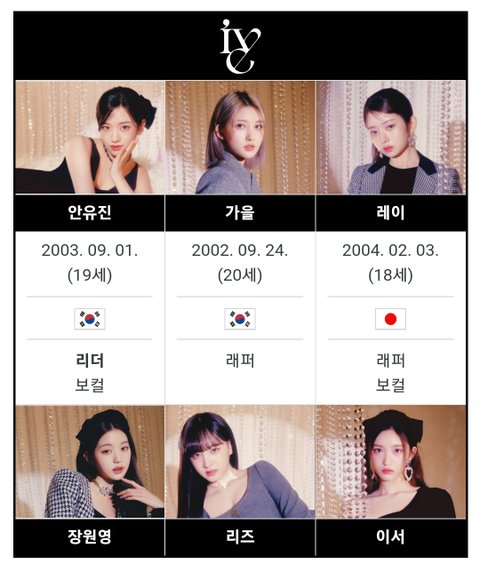 장원영 혼자 혼혈멤버로 표시 되어있고