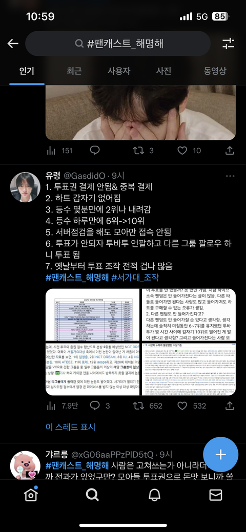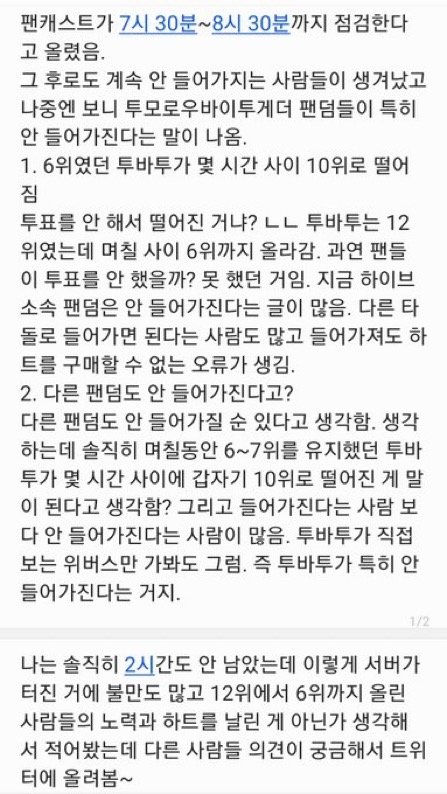투바투 투표가 안되서 다른 계정 파서 타돌 투표해보니까 투표 가능함 실시간 6위에서 갑자기 12위로 하락;;