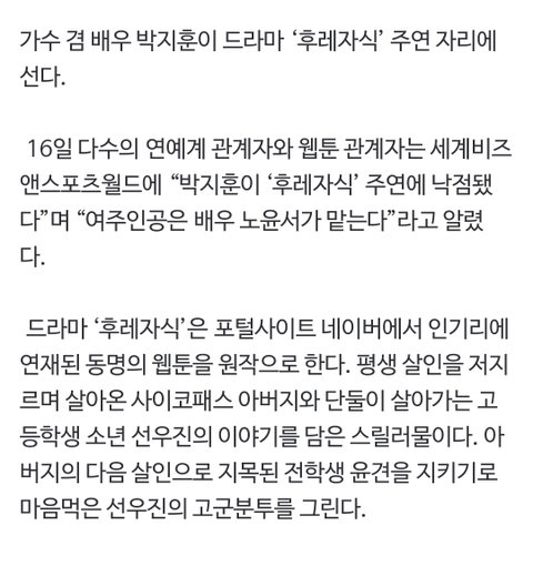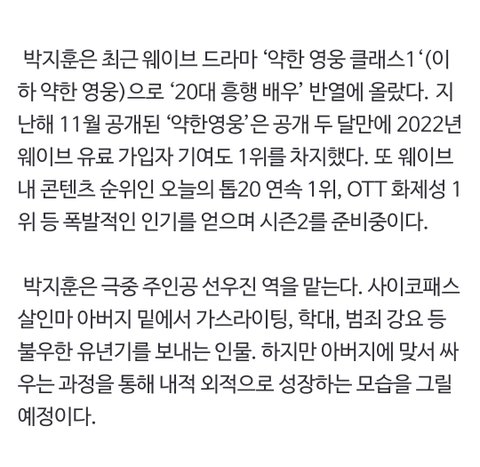 약한영웅 박지훈 후레자식 남주 캐스팅
