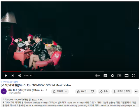 아이들 톰보이 MV 유튜브 2억뷰 달성