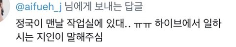 정국이가 조용하면 진짜 일 열심히 하는거네