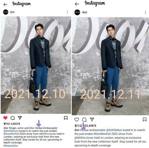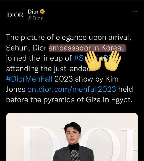 (요약:) 디올이 세훈을 '글로벌 엠버서더 라고 잘못 올림 트위터랑 인스타에 올렸는데 트위터는 수정기능이 없기 때문에 인스타만 제대로 글로벌 아니고 하우스'라고 디올 공계가 수정함 엑소세훈팬들이 세훈 글로벌이라고 갖고오는 캡쳐들은 모두 디올이 첨에 잘못올린 트위터 캡쳐본이라는게 웃참