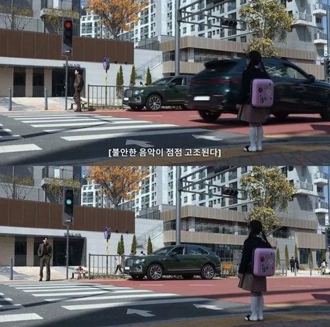 빨간불에서 초록불로 바뀌는 신호등을 보고도