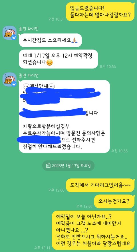 톡이나 전화않고 당연히 밖에서 그냥 기다렸어요.