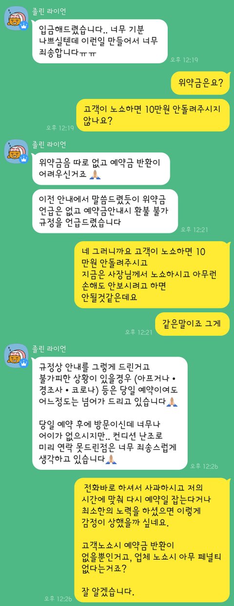 아무튼 소비자가 노쇼시 "위약금"이아닌 "예약금" 환불이 어려운것뿐이고,