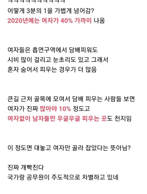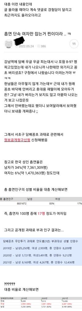공무원들 여자만 담배 집중적으로 잡는 거 팩트임(증거有)