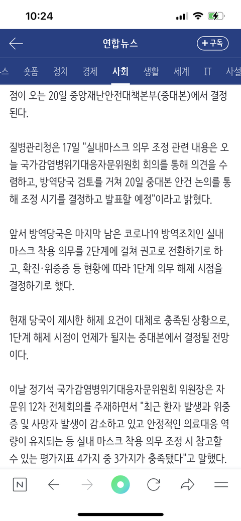 난 진짜 너무 찬성임 자율로 맡기면 솔직히 지옥철이나 버스 좀 붐빌 땐 껴도 평소엔 벗고 다닐 거 같아