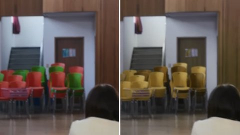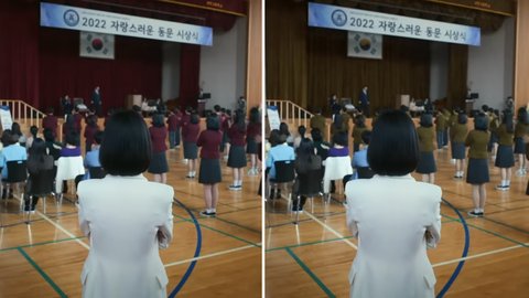 연진이 상 받는다고 학교에 모였을 때 의자 색