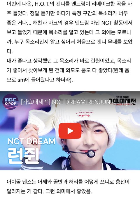 나도 런쥔이 춤 출 때 어깨랑 골반 잘 사용하고 춤선 예뻐서 좋아하는데 딱 집어주셔서 신기해