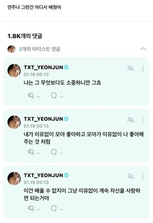 나 오늘 위버스 보고 눈치 없이 댓글로 난 이유가 있어서 좋아하는 거라고 하나 하나 구구절절 말하려다가 말았음...난 좋아하는 이유가 넘치고 넘치는데
