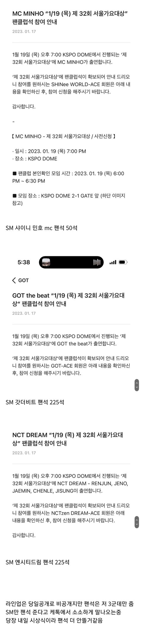 여기 있는 가수들 제외 팬석 공지 없음