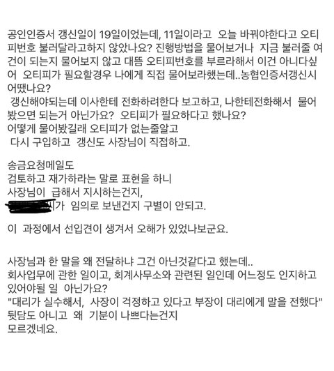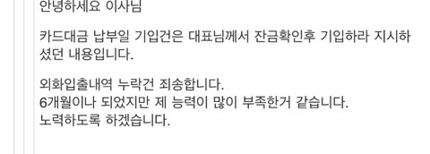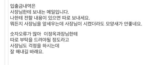 이사는 출근x,집에서 결제대금 이체업무를 맡음
