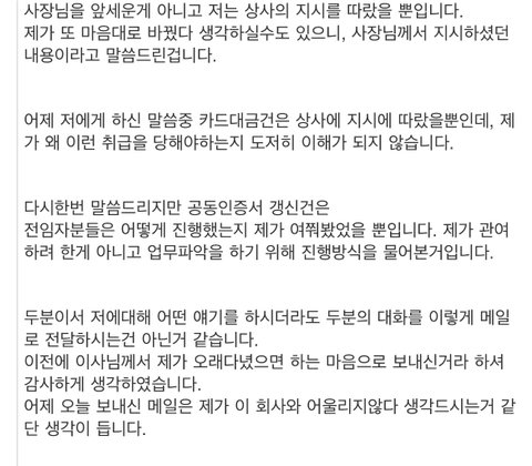 내가바라는건 사과도아님...그냥 오해였구나 인정해주면됨(연봉협상 및 인상을 이사가담당한다기에 내잘못이아니란걸 인정받고싶었음)