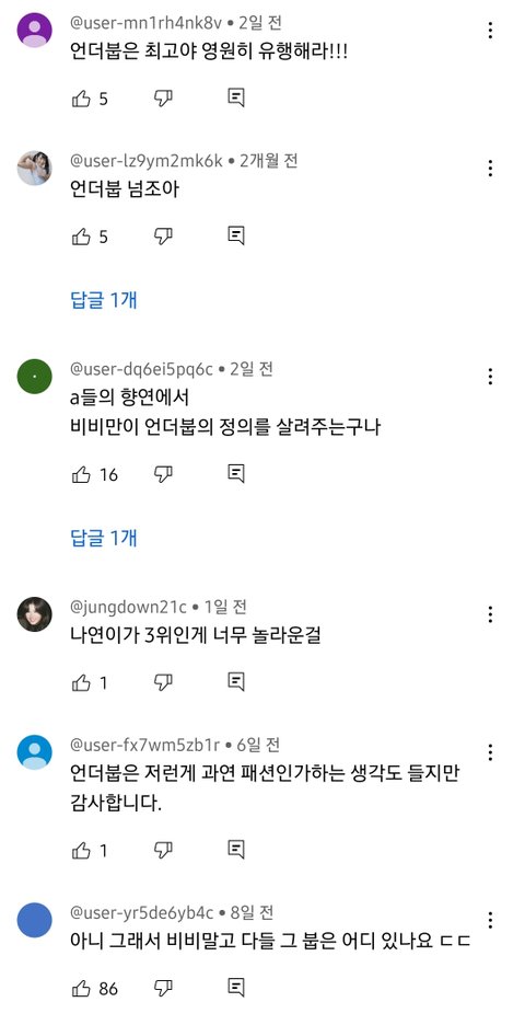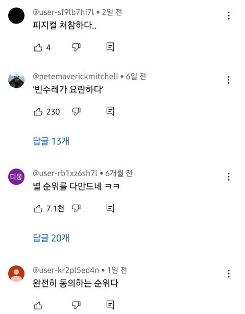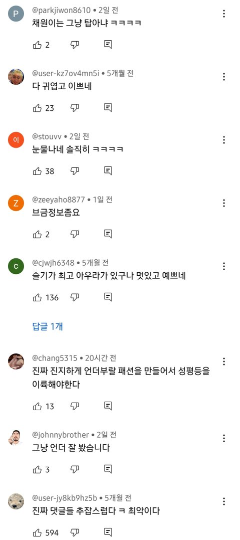 최신댓으로 봐도 다 악플임 저런 성희롱 댓글이 끝없이 있음ㅋㅋㅋㅋ 그성별들이 진짜 사람 죽일듯이 악플달고 성희롱하는중