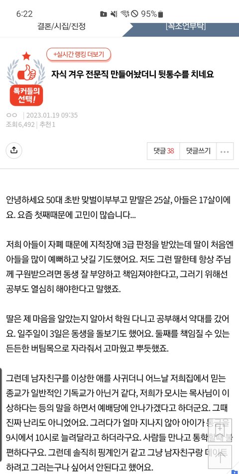 모시는 목사님과 주님이 자폐아 아들 돌봐주시겠지 왜 딸을 잡아 ㅋ 딸이 똑똑해서 다행임.. 부디 영원히 탈출하길.