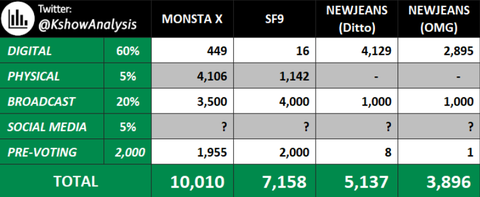 르세라핌, 방탄소년단, 아이브, 에스파, 트와이스, 엔믹스, 스키즈, 더보이즈, 몬스타엑스, 빅뱅, 태양, 아스트로, 있지, 케플러, 레드벨벳