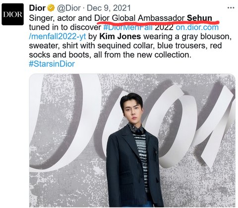엑소 세훈이 아시아남자최초 디올'글로벌엠버서더'맞음ㅇ