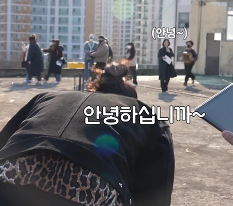 안녕하십니까~! 하면서 90도 인사