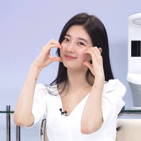 손하트를 볼 옆에 살짝 대는건데