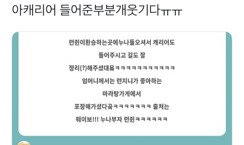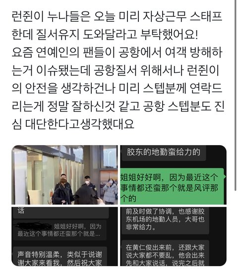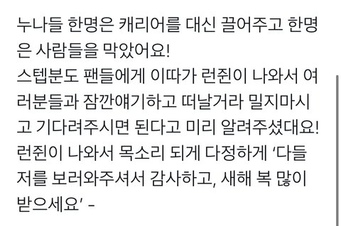 런쥔이 캐리어도 대신 들어주고 공항에서 팬들 관리해주셨대ㅋㅋㅋㅋ 누나들한테 사랑받는 애깅