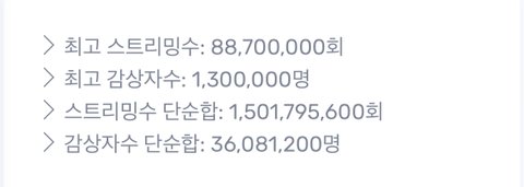 총 스트리밍수 15억 넘었다!