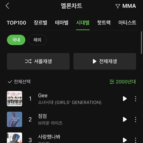 2000년대 2010년대 2020년대 전부 그룹이름으로 연간 차트인함