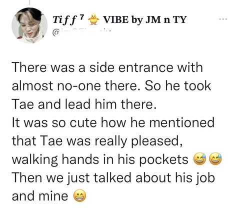 태형이가 주머니에 손을 넣고 걸어다니며 정말 기뻐했다고 그가 말하는게 넘 귀여웠다.