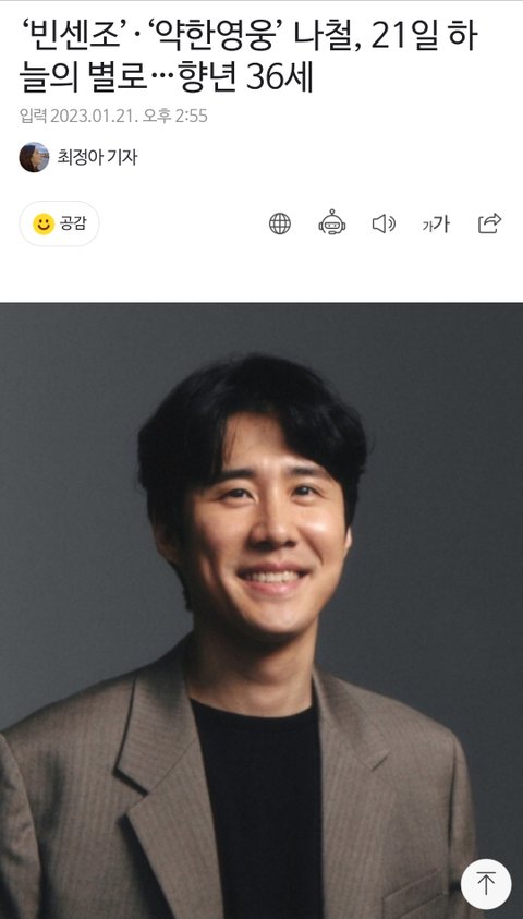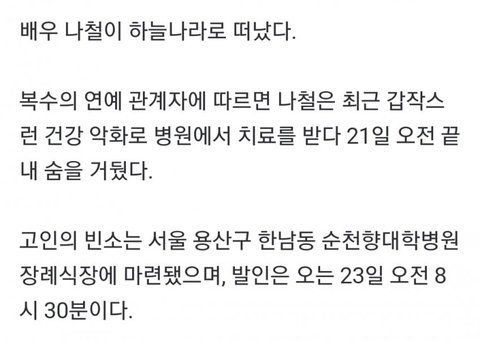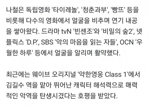 빈센조, 해피니스 등 많은 드라마에서 좋은 연기를 보여주셨던.. 나철님 삼가 고인의 명복을 빕니다..