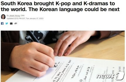 한국이 K-팝, K-드라마에 이어 한국어를 수출하고 있으며, 중국어보다 한국어를 배우는 외국인들이 더 많다고 미국의 CNN이 19일(현지시간) 보도했다.
