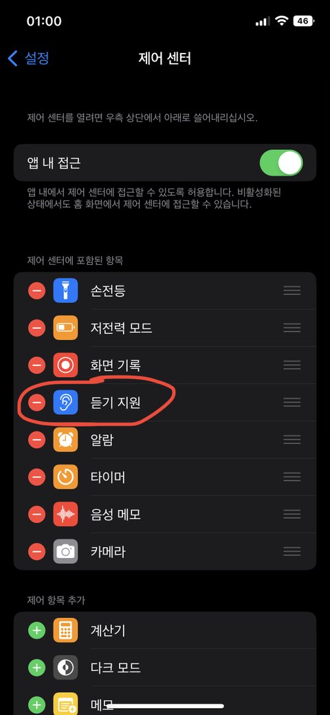 일단 설정 > 제어센터에서 듣기 지원 추가하삼