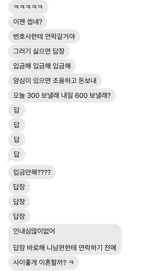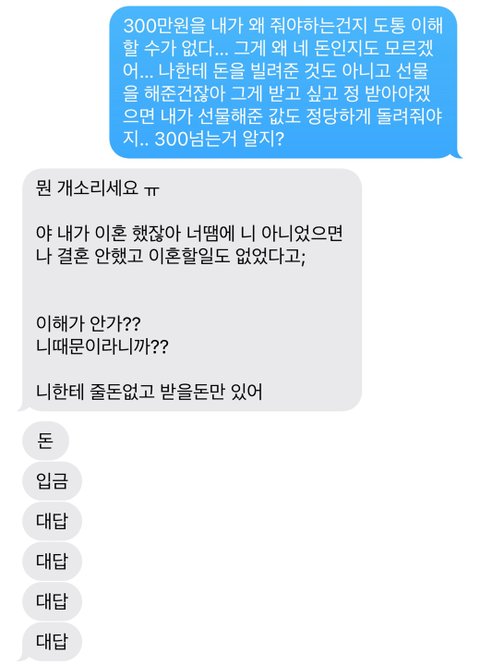 아 또 문자로 대화를 한건.. 제가 카톡을 차단해서 그래요