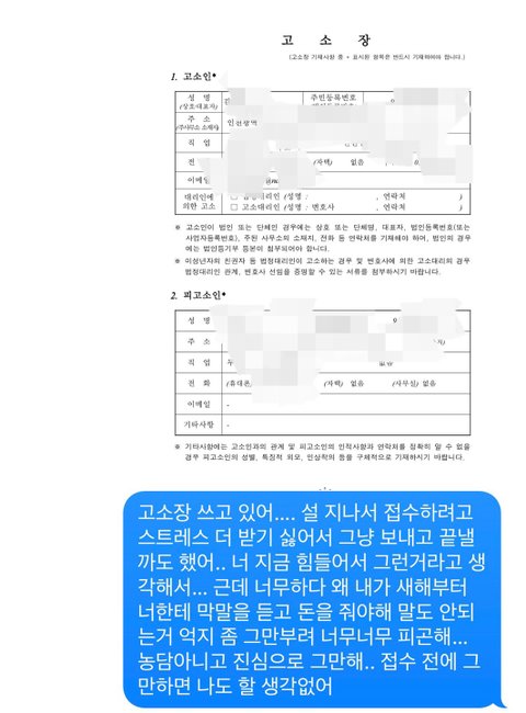 협박으로 고소하라고 하셨는데