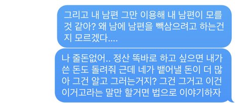 캥기는게 있다면 문자 자체를 남편과 공유하지 않았겠죠...