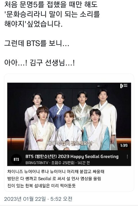 솔직히 방탄 설날 그리팅 보고