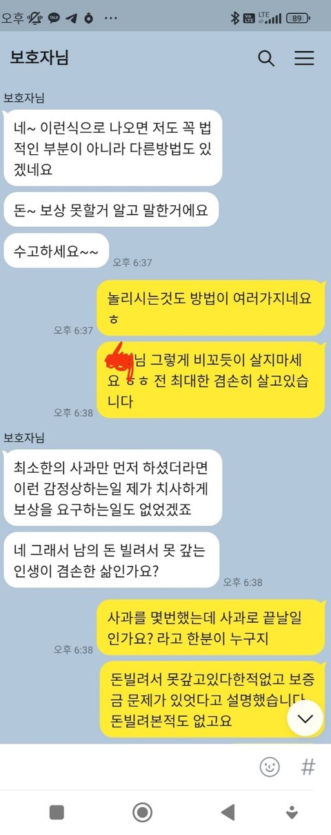 그래서 해결하기 위해선 피해드린거 해결을 할려면 당시 상황 영상도 있다하셧고 그걸 저한테 비용을 달라하시면