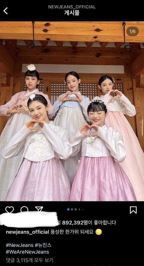그리고 뉴진스 이번 설날에 한복 안 입고 축하 영상 찍어서 욕하고 중국 자본 노리는거냐 친중이다 이딴 소리가 젤 어이없음 응 추석 때 한복 단체로 입고 트위터 공계 인스타 공계에 풍성한 한가위 보내시라고 올렸고 설때 한복 안 입고 영상 올리는 그룹 한 둘이 아닌데 이것도 참 야박해 ㅋㅋ